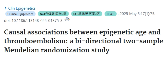 2025年5月17日,《Clin Epigenetics》刊登了一項中國學者的孟德爾隨機化(MR)研究論文,探討了表觀遺傳年齡因子與血栓栓塞的因果關(guān)系。該研究通過雙向孟德爾隨機化方法,利用遺傳變異作為工具變量,排除了傳統(tǒng)觀察性研究中的混雜偏倚,得出了一系列重要發(fā)現(xiàn)。