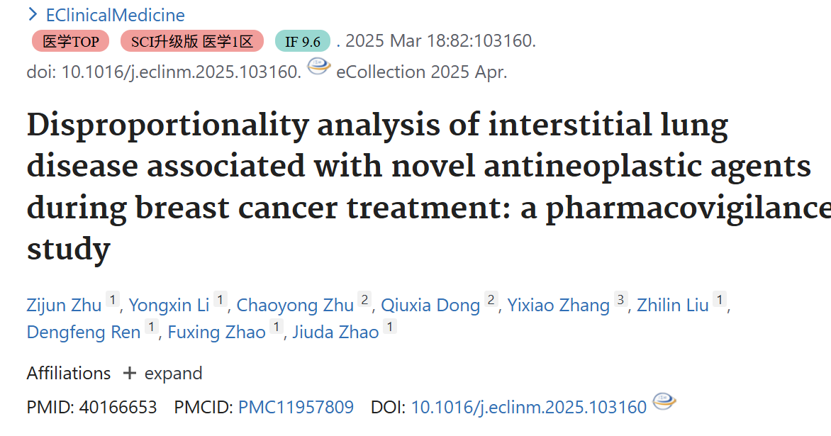 2025年3月18日,在《EClinicalMedicine》上一篇名為“Disproportionality analysis of interstitial lung disease associated with novel antineoplastic agents during breast cancer treatment: a pharmacovigilance study”的研究論文被發(fā)表,本研究旨在檢測與乳腺癌治療中使用的新型抗腫瘤藥物相關(guān)的間質(zhì)性肺?。↖LD)不成比例報(bào)告的信號。