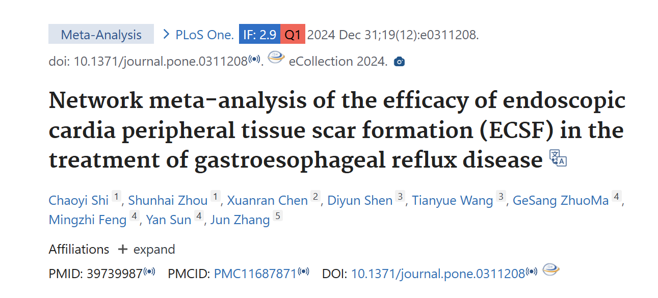 2024年12月31日,在《Plos one》上一篇名為“Network meta-analysis of the efficacy of endoscopic cardia peripheral tissue scar formation (ECSF) in the treatment of gastroesophageal reflux disease”的研究論文被發(fā)表,本綜述和薈萃分析旨在評(píng)估和比較內(nèi)窺鏡下賁門外周組織瘢痕形成(ECSF)手術(shù)期間抗反流治療的安全性和有效性。