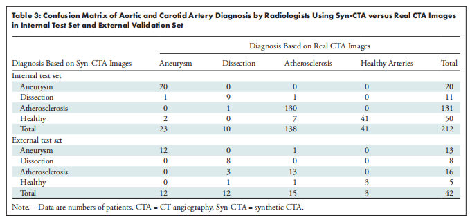 內(nèi)部測試集總體準確率94%(F1=91%),動脈瘤敏感度87%、夾層90%、粥樣硬化94%。