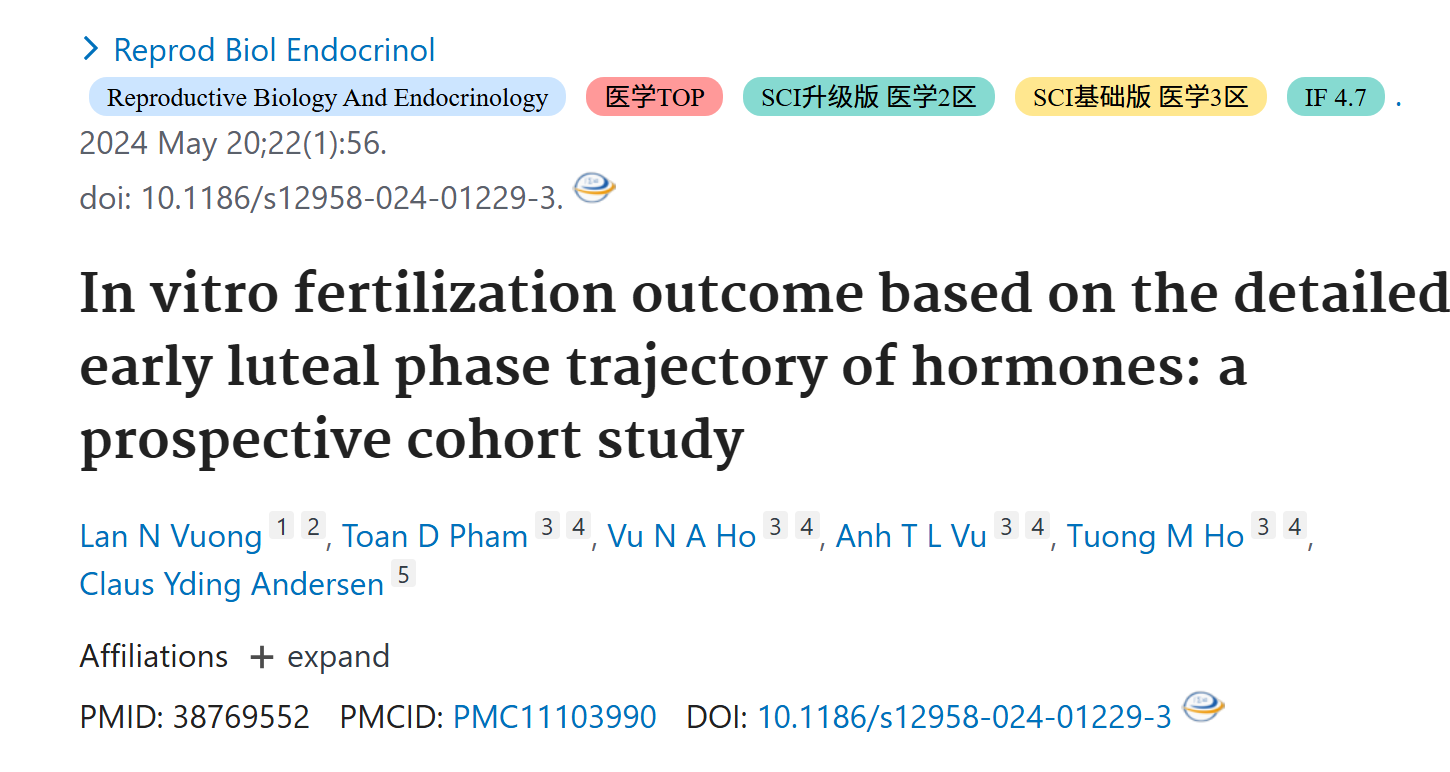 2024年5月20日,在《Reproductive Biology And Endocrinology》上一篇名為“In vitro fertilization outcome based on the detailed early luteal phase trajectory of hormones: a prospective cohort study”的研究論文被發(fā)表,本研究確定了血清黃體酮、17-羥孕酮和hCG的早期黃體期特征,以及hCG觸發(fā)后的激素水平/激素水平特征與接受新鮮胚胎移植的IVF女性活產(chǎn)率之間的關(guān)聯(lián)。