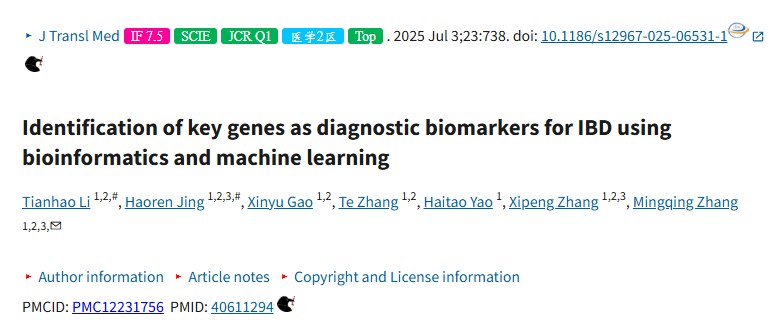題目:利用生物信息學(xué)和機(jī)器學(xué)習(xí)識(shí)別作為IBD診斷生物標(biāo)志物的關(guān)鍵基因