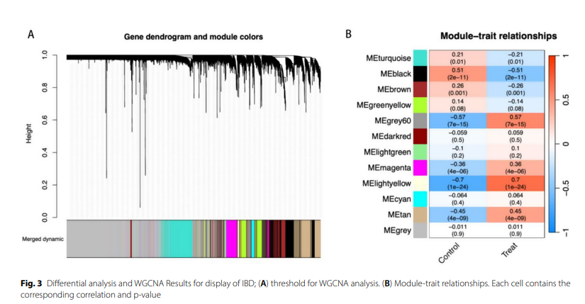 2、WGCNA確定了與IBD密切相關(guān)的DEG上的關(guān)鍵模塊