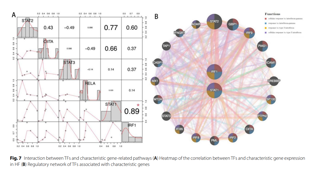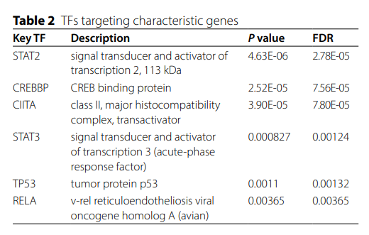 6、CIITA、STAT3、RELA、STAT2是針對(duì)特征基因IRF1和STAT1進(jìn)行主動(dòng)靶向的轉(zhuǎn)錄因子(TF)