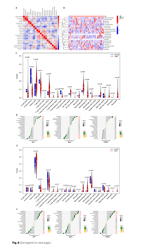 7、巨噬細(xì)胞M1細(xì)胞浸潤(rùn)增高和漿細(xì)胞浸潤(rùn)減少與中心基因高度相關(guān)
