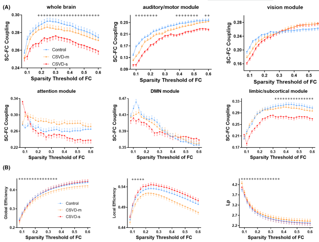 CSVD 中中斷的 SC-FC 耦合和功能全局效率