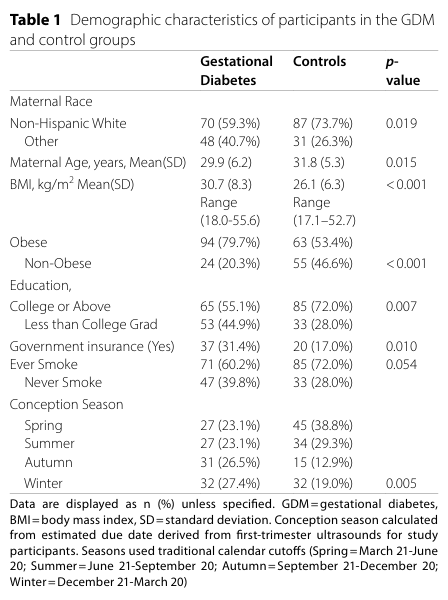 表1顯示了GDM患者和對照組的人口統(tǒng)計學特征。