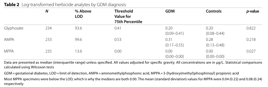 Haas DM, Moss K, Faysal H, Yee LM, Silver RM, Grobman WA. First trimester urine glyphosate concentrations and gestational diabetes in nulliparas: a nested case-control study. Environ Health. 2025 Oct 7;24(1):71.
